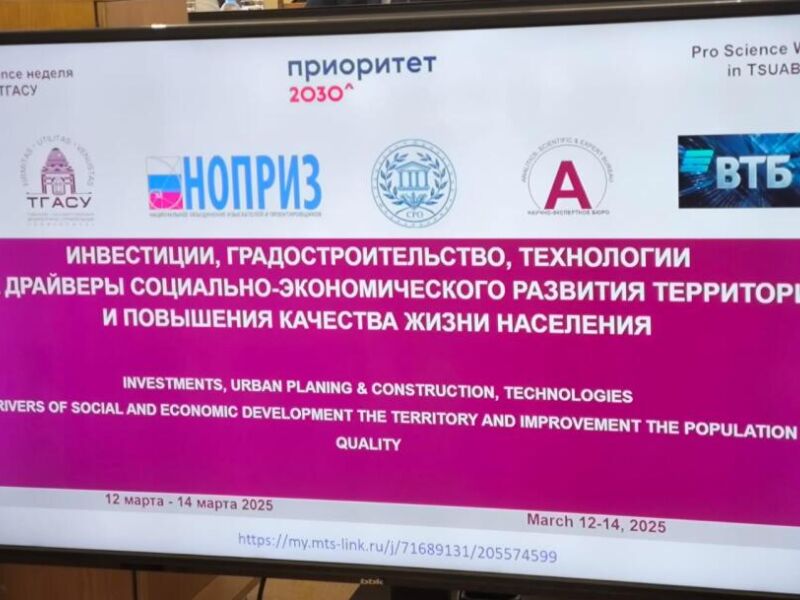 В Томске начала работу 15-я Международная научно-практическая конференция «Инвестиции, градостроительство, технологии как драйверы социально-экономического развития территорий и повышения качества жизни населения», которая проходит в рамках «Pro Science недели» в Томском архитектурно-строительном университете.