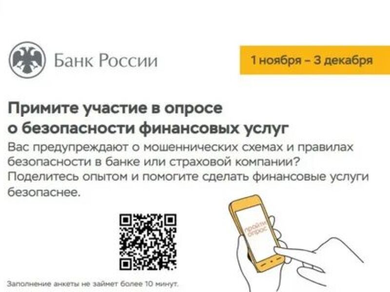 Банк России предлагает клиентам кредитно-финансовой сферы принять участие в анонимном опросе о безопасности услуг, предоставляемых финансовыми организациями. Ответить на вопросы могут как физические, так и юридические лица.