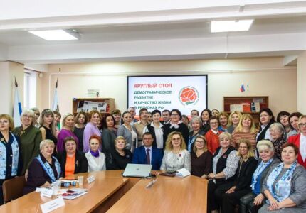 Участники круглого стола обсудили вопросы демографической политики в России, меры социальной поддержки многодетных семей, возможности системы образования для формирования семейных ценностей у детей, стратегию развития активного долголетия в регионе.